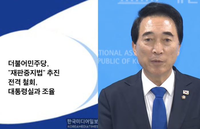 속보) 더불어민주당, "재판중지법" 추진 전격 철회, 대통령실과 조율
