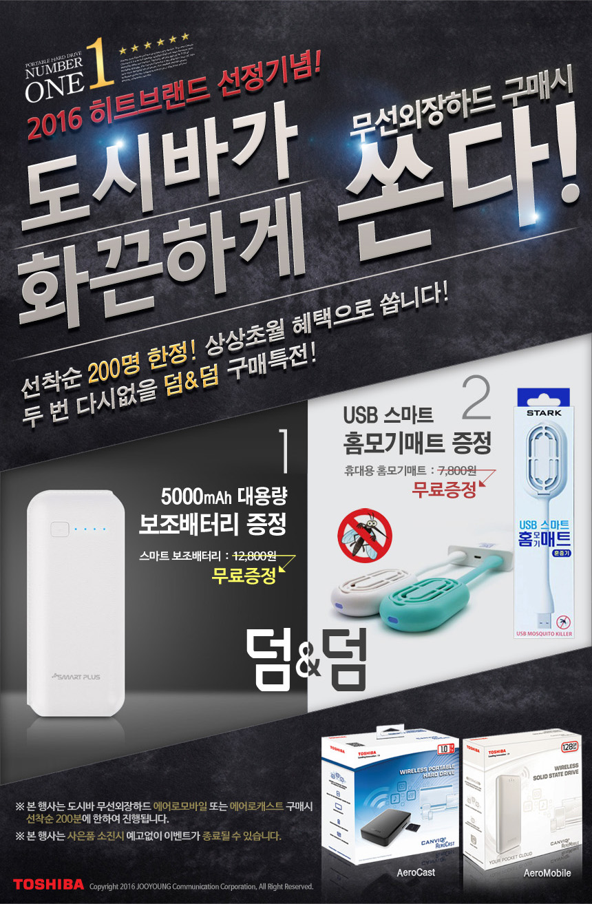 | 도시바, 무선 외장하드 구입하면 휴대용 전자모기향 및 보조배터리 제공