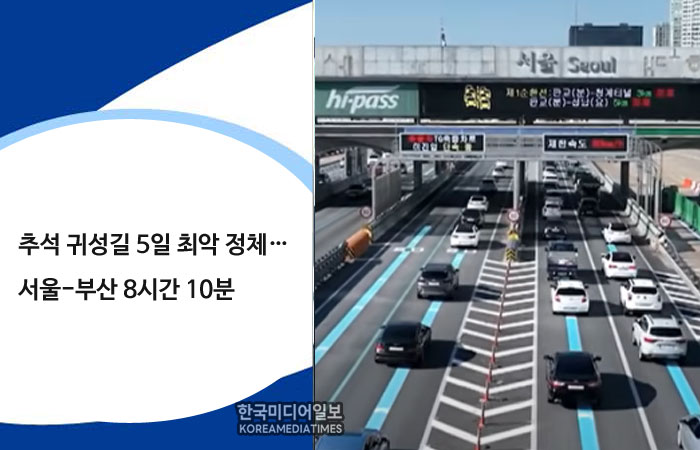 국토교통부와 한국도로공사가 발표한 '2025년 추석 연휴 특별교통대책'에 따르면, 귀성 차량은 5일 오전에 집중적으로 몰리면서 하루 종일 극심한 정체를 빚을 전망이다. 이날 서울에서 출발하는 귀성 차량의 최대 소요 시간은 요금소 기준으로 부산까지 8시간 10분, 광주까지 6시간 10분, 강릉까지 5시간 20분이 걸릴 것으로 예상된다. 이는 평소보다 3~4시간 이상 더 걸리는 수준이다.