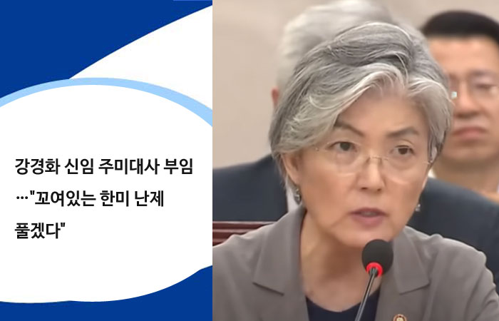 강경화 신임 주미대사가 현지시간 4일 미국 워싱턴 D.C.에 도착하며 "한미 간에 쌓여 있는 어려운 난제들을 대사로서, 그리고 공관의 역량을 총동원해 풀 수 있도록 하겠다"고 부임 일성을 밝혔다. 산적한 현안의 최전선에 선 만큼, 외교 수장으로서의 경험과 역량을 발휘해 국익을 지키겠다는 강한 의지를 표명한 것이다.
