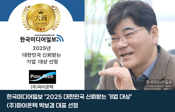 (주)파이온텍(대표 김태곤)이 한국미디어일보가 주최하는 "2025 대한민국 신뢰받는 기업 대상"에서 R&D 혁신 부문 대상을 수상했다.