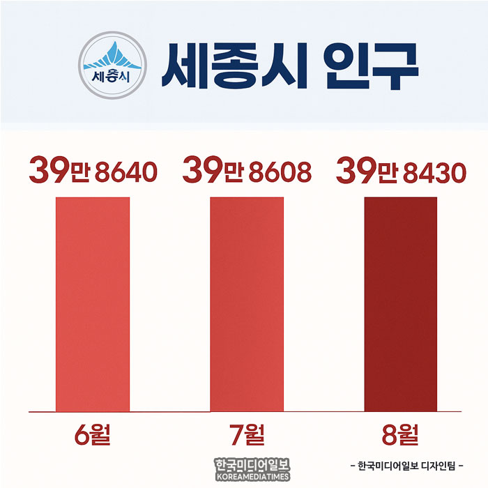 출범 이후 꾸준히 늘던 세종시 인구가 처음으로 감소세로 돌아섰다. 2012년 출범 당시부터 ‘대한민국 행정수도’를 표방하며 급격한 성장을 이어왔던 세종시는 지난 6월 인구 39만 8640명을 기록한 뒤 두 달 연속 감소세를 보였다. 특히 9월에는 인구 대비 전출 인구 비율을 나타내는 순유출률이 전국 최고를 기록하며 뚜렷한 하락세로 접어들었다.
