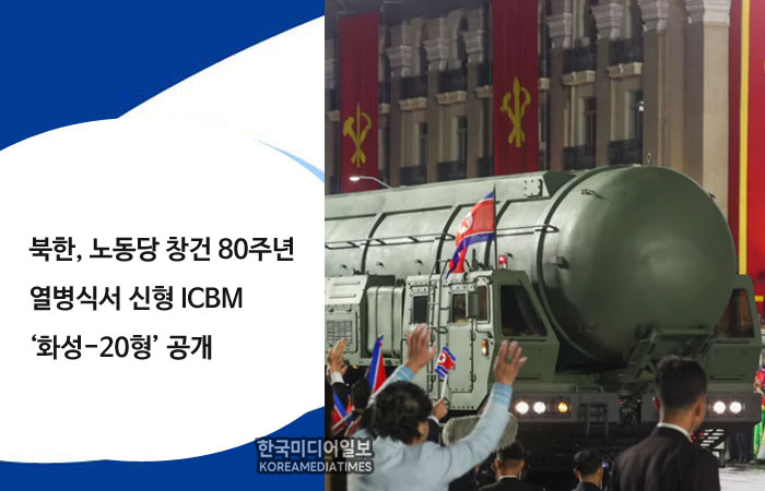 북한이 노동당 창건 80주년을 맞아 열린 대규모 열병식에서 신형 대륙간탄도미사일(ICBM) ‘화성-20형’을 공개했다. 이번 행사에는 중국, 러시아, 아세안 국가 고위 인사들이 참석한 가운데, 북한은 핵무력의 실질적 고도화와 국제적 존재감을 동시에 과시하려는 의도를 드러낸 것으로 분석된다.