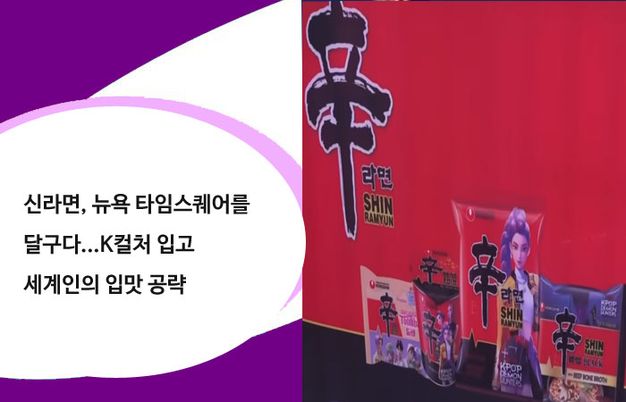 "세계 문화의 교차로"로 불리는 미국 뉴욕 타임스퀘어 한복판에서 K팝 음악과 함께 한국의 대표적인 '매운맛' 신라면이 팔팔 끓었다. 농심은 지난 18일(현지시간), 전 세계적인 신드롬을 일으키고 있는 넷플릭스 애니메이션 "K팝 데몬헌터스"와 손잡고 팝업 이벤트를 개최했다. 이는 단순히 음식을 알리는 시식 행사를 넘어, 가장 한국적인 맛을 글로벌 문화 현상의 중심으로 끌어들여 K푸드의 위상을 한 단계 격상시키려는 전략적 시도라는 평가가 나온다.