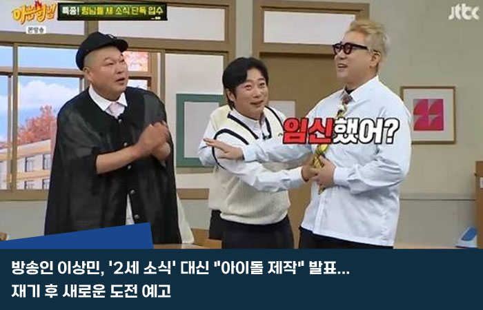 방송인 이상민이 '2세 소식'에 대한 대중의 기대 대신 "아이돌 제작"이라는 깜짝 계획을 공개하며 이목을 집중시키고 있다. 이상민은 지난 1일 방송된 JTBC '아는형님'에서 "최초 공개하겠다"고 선언하며 이 같은 새로운 도전을 예고했다.