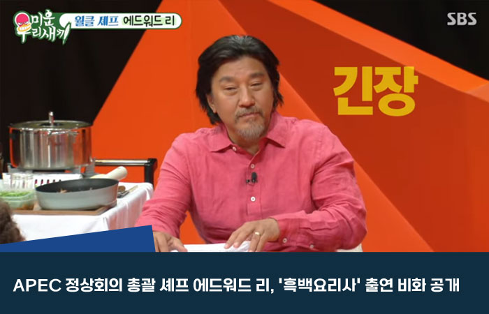 최근 아시아 태평양 경제협력체(APEC) 정상회의 총괄 셰프로 발탁되며 한국 요리의 글로벌 위상을 높이는 데 기여한 에드워드 리 셰프가 16일 SBS 예능 프로그램 '미운 우리 새끼(미우새)'에 스페셜 MC로 출연해 유쾌한 입담과 함께 자신의 성공 비하인드 스토리를 공개했다. 그는 이날 출연진에게 직접 콩비지 요리를 대접하며 한국 식재료를 활용한 혁신적인 요리 철학을 소개했다. 에드워드 리는 APEC 정상회의 총괄 셰프 발탁 소감에 대해 "정말 대단한 영광이었다"고 밝히며, "정통 한식은 이미 완벽하지만, 한국 식재료의 매력을 글로벌하게 보여주고자 메뉴의 절반은 전통, 절반은 혁신적인 한식으로 구성했다"고 설명해 한식의 세계화에 대한 강한 의지를 내비쳤다.