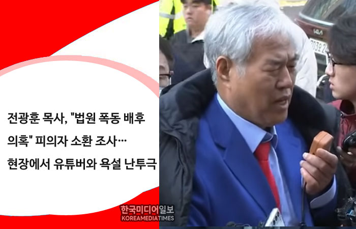 전광훈 목사, "법원 폭동 배후 의혹" 피의자 소환 조사…현장에서 유튜버와 욕설 난투극