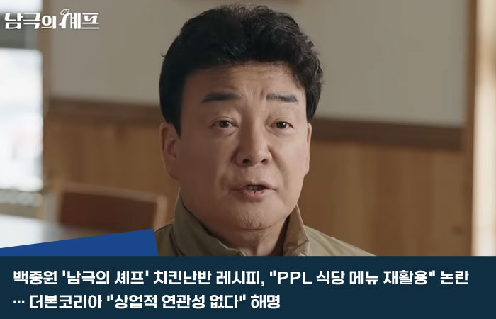 백종원 '남극의 셰프' 치킨난반 레시피, "PPL 식당 메뉴 재활용" 논란… 더본코리아 "상업적 연관성 없다" 해명