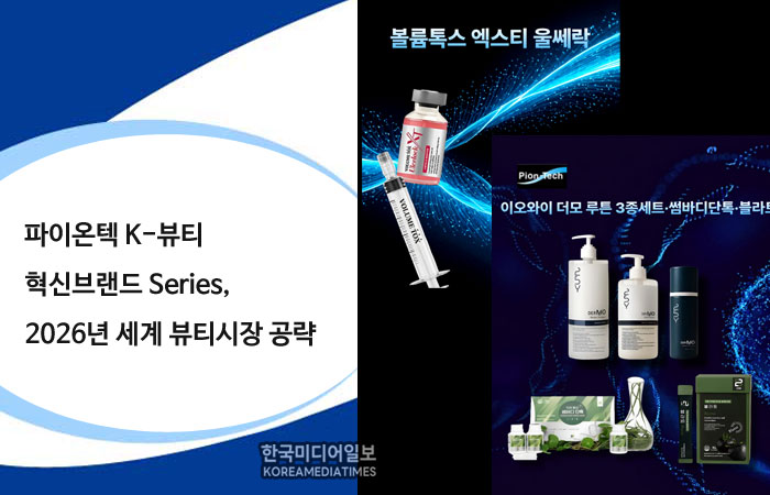바이오·코스메틱 전문기업 ㈜파이온텍이 2026년을 기점으로 자사 핵심 기술과 제품 라인을 총망라한 ‘K-뷰티 혁신브랜드 Series’ 글로벌 공략 전략을 본격화하고 있다. 파이온텍은 스피큘(Spicule) 기반 코스메슈티컬 기술, 차세대 프리미엄 라인인 ‘볼륨톡스 XT 울쎄락(VolumeTox XT Ulserack)’, 두피 과학 브랜드 ‘이오와이 더모 루튼’, 바디 라인 ‘썸바디단톡·블라토’ 등 다양한 혁신 포트폴리오를 기반으로 2026~2027년 세계 시장 확대 로드맵을 제시했다.