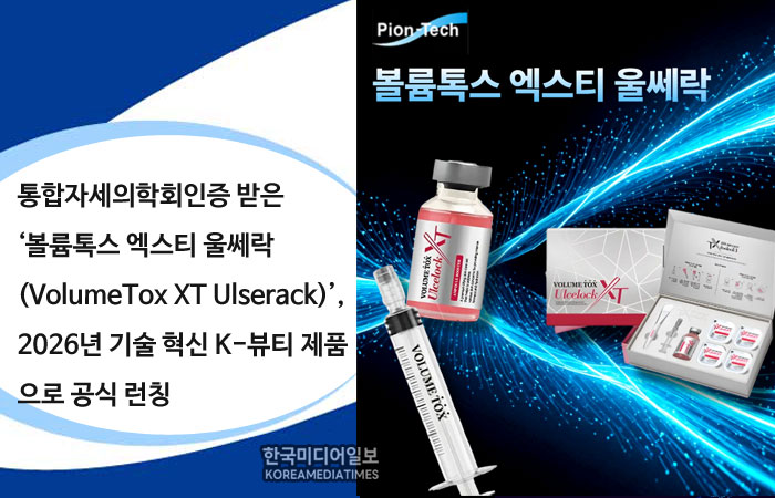 바이오 코스메틱 전문기업 파이온텍은 2026년 프리미엄 코스메슈티컬 라인인 ‘볼륨톡스 엑스티 울쎄락(VolumeTox XT Ulserack)’을 공식 출시했다고 5일 밝혔다. 이 제품은 피부 탄력·리프팅·볼륨 개선을 동시에 겨냥한 과학기반 스킨 솔루션으로, 학회의 의사(MD) 및 한의사(KMD) 인증제품임을 명시하고 있다.