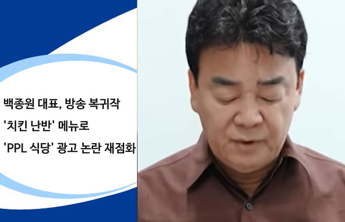 논란이 된 '치킨 난반' 메뉴는 백종원 대표가 운영했던 유튜브 프로젝트성 식당인 'PPL 식당'에서 '닭튀김 정식'이라는 이름으로 판매되었던 메뉴와 구성이 사실상 동일한 것으로 알려졌다. 방송에 등장한 메뉴와 과거 판매 메뉴의 타르타르 소스, 밑반찬, 구성 방식 등이 유사하다는 점이 지적되면서, 백 씨가 방송을 통해 자사 식당을 간접적으로 홍보하려 한 것 아니냐는 비판이 제기되었다. 현재 이와 관련한 민원이 방송통신심의위원회(방통위)에 접수된 상태이다.