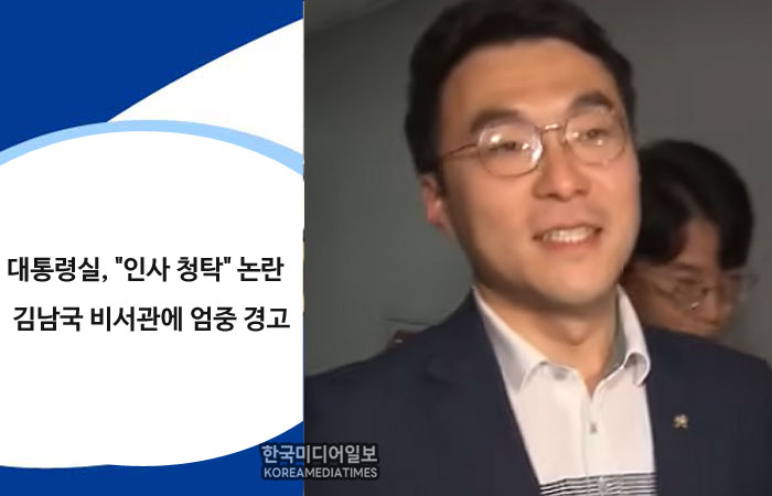 대통령실이 국회 본회의장에서 "인사 청탁" 문자를 받은 사실이 공개되며 논란에 휩싸인 김남국 국민디지털소통비서관에 대해 엄중 경고 조치했다고 밝혔다. 대통령실은 3일 오전 언론 공지를 통해 "부정확한 정보를 부적절하게 전달한 내부 직원에 대해 공직 기강 차원에서 엄중 경고 조치했음을 알린다"고 발표했다.