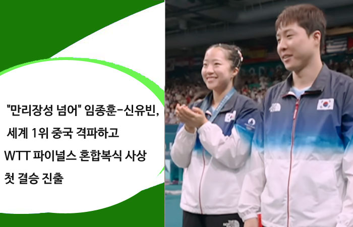 한국 탁구의 혼합복식 간판 임종훈(한국거래소)과 신유빈(대한항공) 조가 세계 최강 중국 조를 격파하는 파란을 일으키며 국제 탁구 연맹(ITTF) 월드 테이블 테니스(WTT) 파이널스 혼합복식 부문에서 한국 선수로는 역사상 처음으로 결승에 올랐다. 이들은 13일 홍콩 콜리세움에서 개최된 WTT 파이널스 홍콩 2025 혼합복식 준결승전에서 세계 랭킹 1위인 린스둥–콰이만(중국) 조를 게임 스코어 3-1(6-11, 11-6, 11-2, 14-12)로 제압하는 쾌거를 달성했다. 이 승리는 이번 대회에서 중국 선수가 타국 선수에게 당한 첫 번째 패배이자, 한국 탁구 역사에 길이 남을 만한 '대이변'으로 평가된다.
