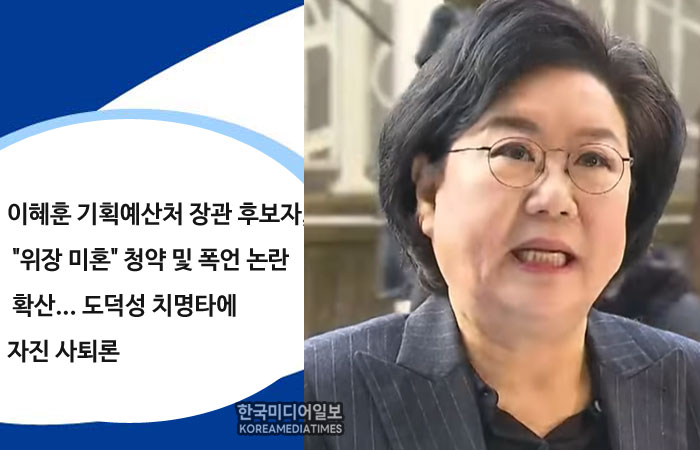 기획예산처 초대 장관으로 지명된 이혜훈 후보자가 과거 보좌진을 향한 폭언 녹취록 공개와 더불어, 가족의 부정한 방법을 동원한 강남 아파트 청약 당첨 의혹이 추가로 제기되며 사퇴 압박이 거세지고 있다. 신설 부처의 수장으로서 고도의 도덕성과 청렴성이 요구되는 시점이나, 연일 터져 나오는 각종 비리 의혹으로 인해 후보자의 적격성 논란은 이미 한계를 넘어섰다는 지적이 나온다.