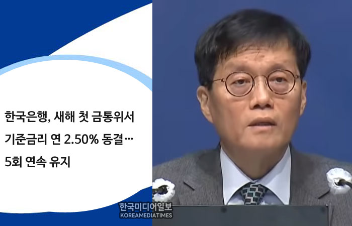 한국은행 금융통화위원회(금통위)는 15일 오전 서울 중구 본부에서 올해 첫 통화정책방향 결정회의를 열고 기준금리를 현재의 연 2.50% 수준에서 동결하기로 결정했다. 이로써 기준금리는 지난해 하반기 이후 5회 연속 같은 수준을 유지하게 되었다. 이번 결정은 불안정한 환율 흐름과 가계부채 증가세, 수도권 부동산 가격 변동성 등 대내외 금융시장 리스크를 종합적으로 고려한 "숨 고르기" 전략으로 풀이된다.