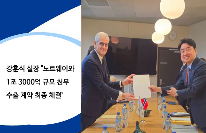 강훈식 대통령 비서실장이 노르웨이 정부와 1조 3000억 원 규모의 방산 수출 계약을 마무리 지었다. 전략경제협력 대통령 특사 자격으로 노르웨이를 방문 중인 강 실장은 현지 시각으로 서명 절차가 완료됐음을 확인했다. 이번 계약에 따라 한국산 다연장 로켓인 천무가 노르웨이 군에 도입된다.