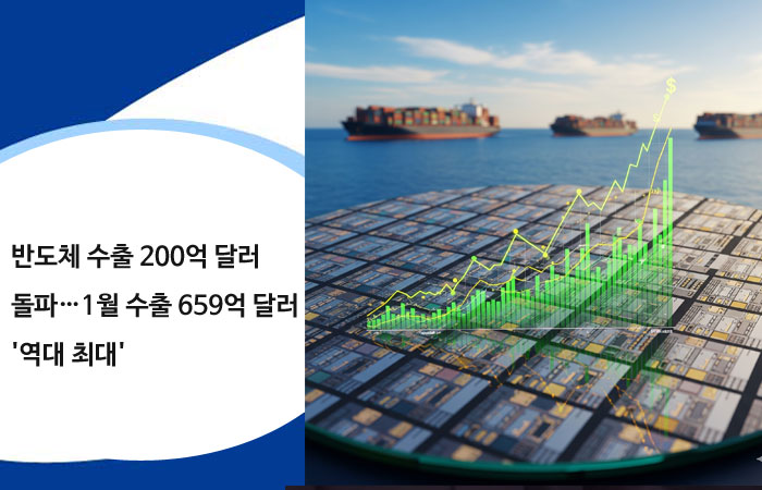 수출 성장의 일등 공신은 주력 품목인 반도체였다. 1월 반도체 수출액은 205억 달러를 기록하며 작년 1월보다 2배 이상 급증했다. 반도체 수출이 200억 달러 선을 넘어선 것은 지난해 12월에 이어 2개월 연속이다. 인공지능(AI) 서버용 고부가가치 제품 수요가 지속되면서 전체 수출 실적을 강력하게 견인했다는 분석이다.