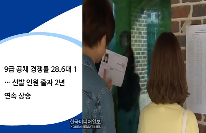 인사혁신처는 올해 국가공무원 9급 공개경쟁 채용시험 응시원서 접수 결과 선발 예정 인원 3802명에 총 10만 8718명이 지원했다고 7일 밝혔다. 평균 경쟁률은 28.6대 1로 집계됐다. 32년 만에 최저치를 기록했던 2024년(21.8대 1) 이후 지난해(24.3대 1)에 이어 올해까지 2년 연속으로 반등한 수치다.