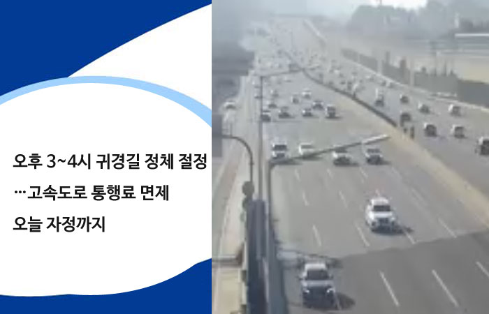 연휴 기간 시행된 고속도로 통행료 면제 혜택은 오늘 자정까지 적용된다. 오늘 밤 12시 이전에 요금소에 진입하거나 진출하는 차량 모두 면제 대상에 포함된다. 운전자는 정체 상황과 사고 소식을 도로공사 홈페이지나 실시간 교통정보 앱을 통해 수시로 확인하며 안전 운전에 유의해야 한다.