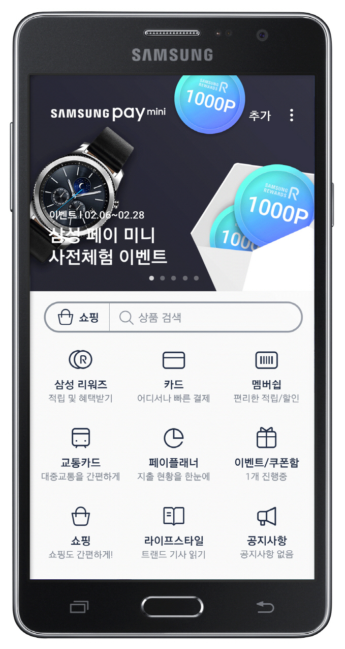 삼성전자는 갤럭시 스마트폰뿐 아니라 안드로이드 기반 스마트폰에서 삼성 페이를 사용할 수 있는 ‘삼성 페이 미니’ 서비스를 1분기 중 국내 정식 출시한다고 2일 밝혔다.