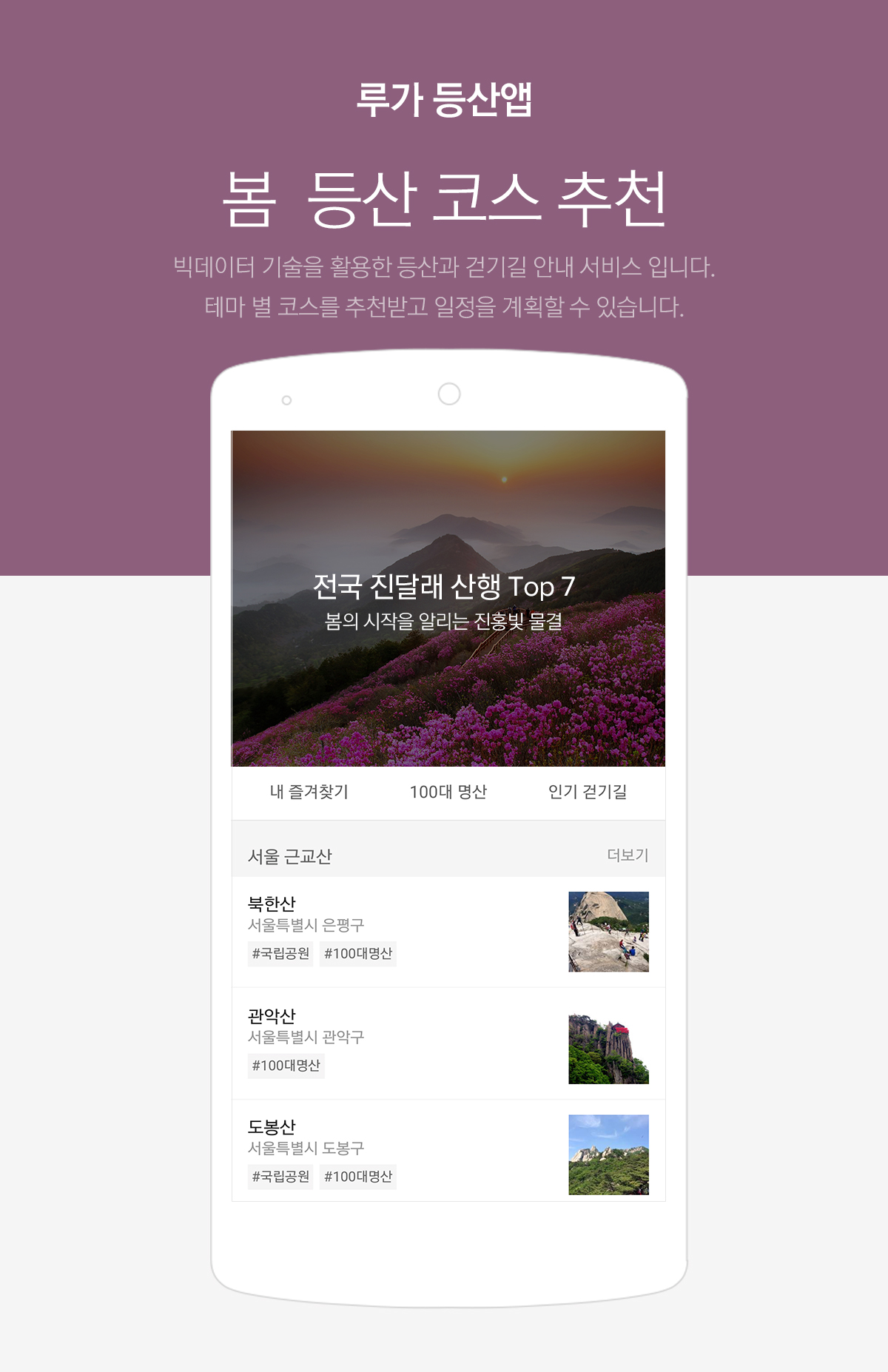 루가 등산 앱(대표 박용덕)이 빅데이터 기술을 활용한 봄 시즌 등산 코스 추천 서비스를 제공한다고 12일 밝혔다.